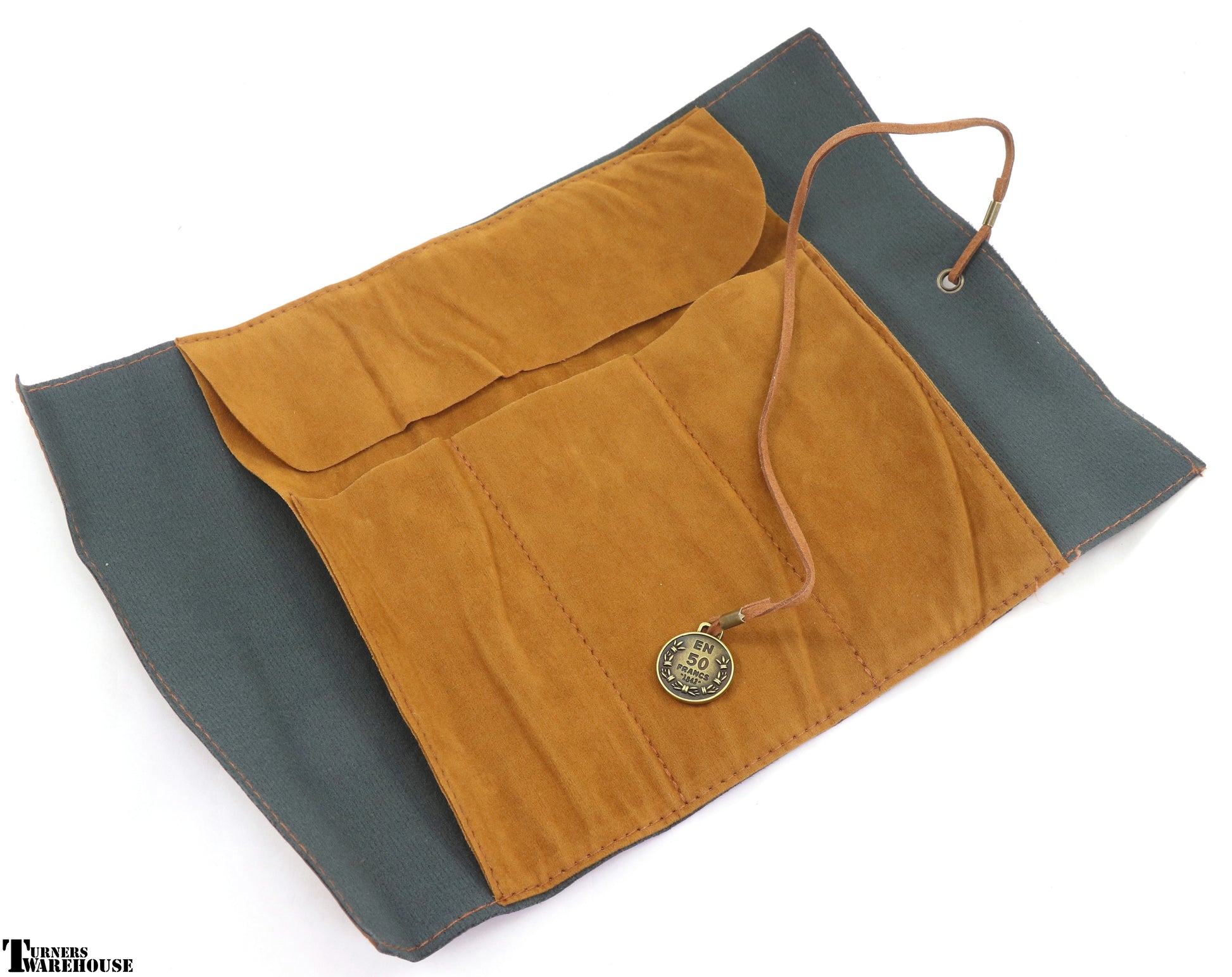 - Rolled Case is fastened with wrapping leather band around to secure.